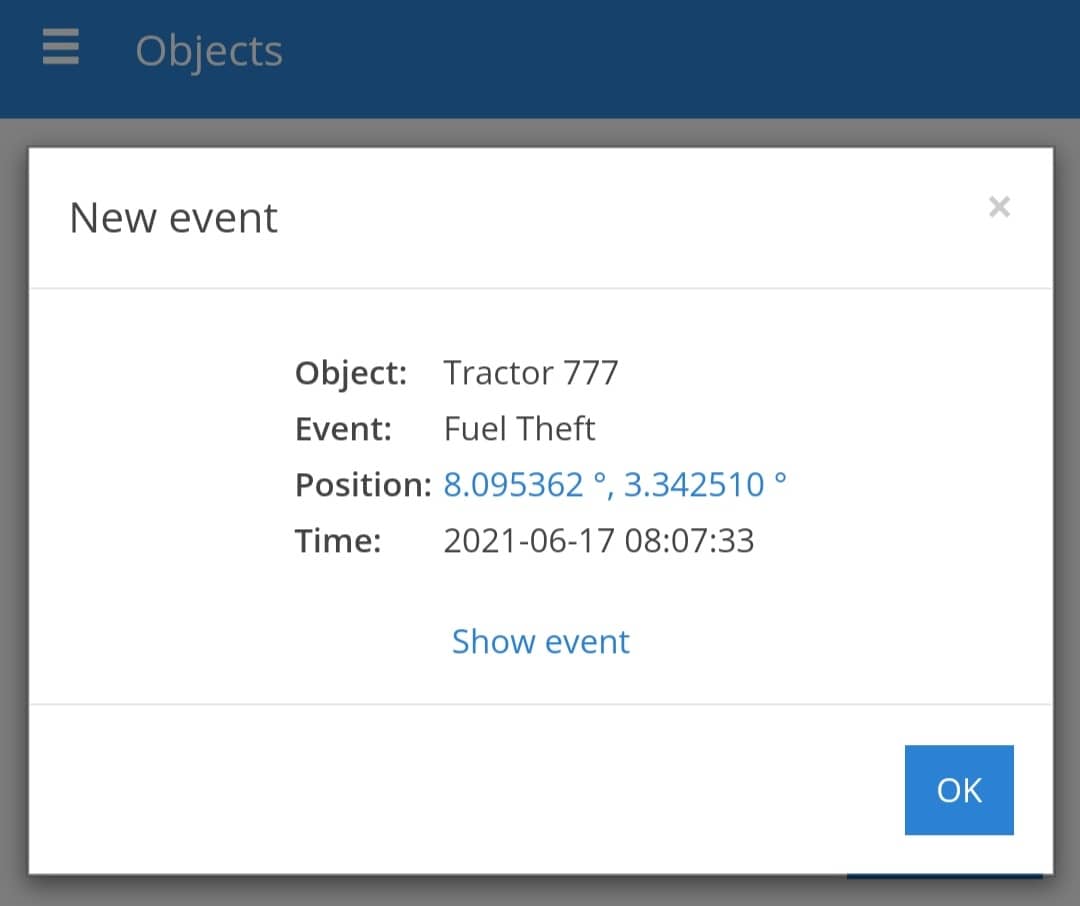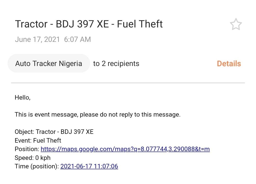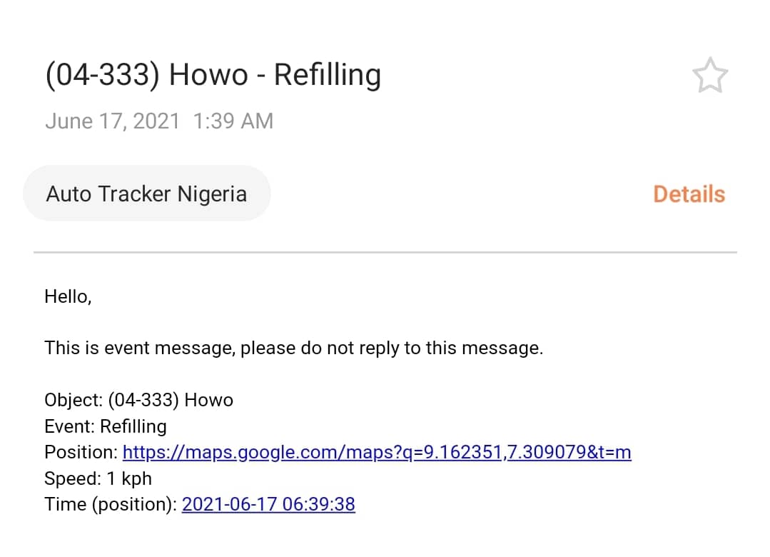 You will get system notification immediately there is sudden change in fuel level in the tank. Sudden increase or reduction up to 10% will trigger event notification. Up to 10% increase signifies refilling and less than 10% decrease could mean draining – Theft. Notification will be sent immediately to Owner’s email or on the App of push notification is enabled for our App.