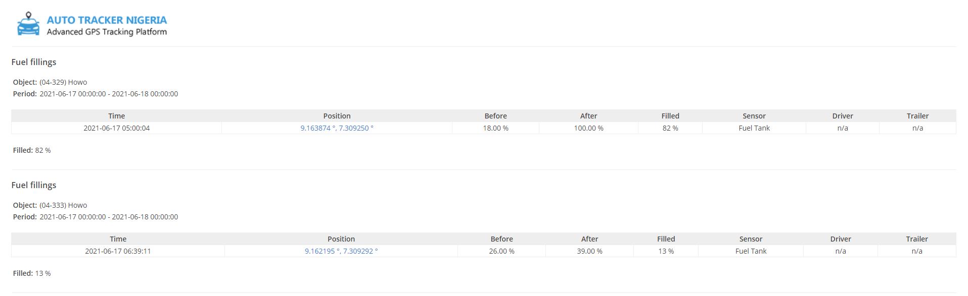 GPS Vehicle Tracking with Fuel Level Monitoring features cost N300,000 per Truck. Installations on Advanced Request.