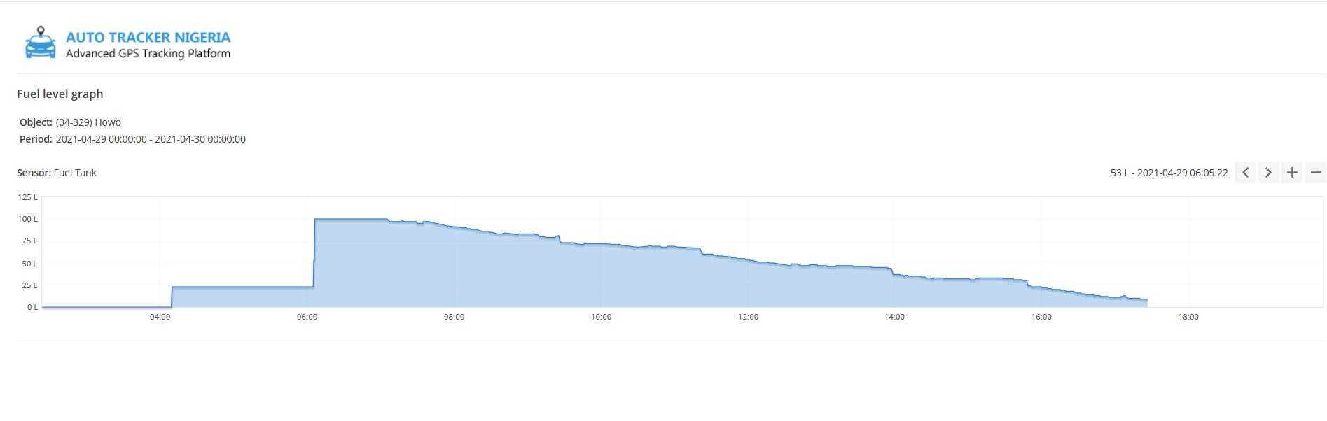 You can generate full periodic reports on our platform, Instant monitor fuel level in real time on the web and on our App.